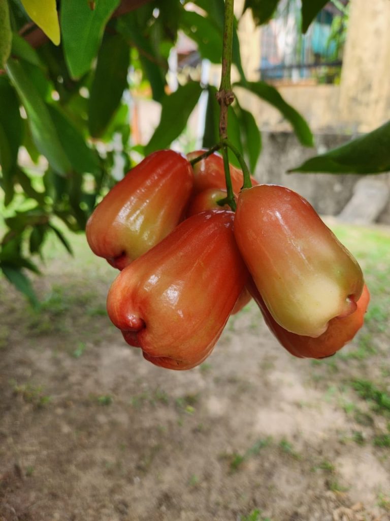 Thanks to my wife, Datin Azimah, who closely takes care of the rose apple tree, pruning and fertlising, we are now ready to enjoy bountiful rose apple fruits. They look juicy red.